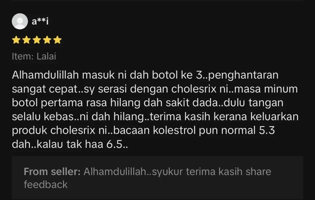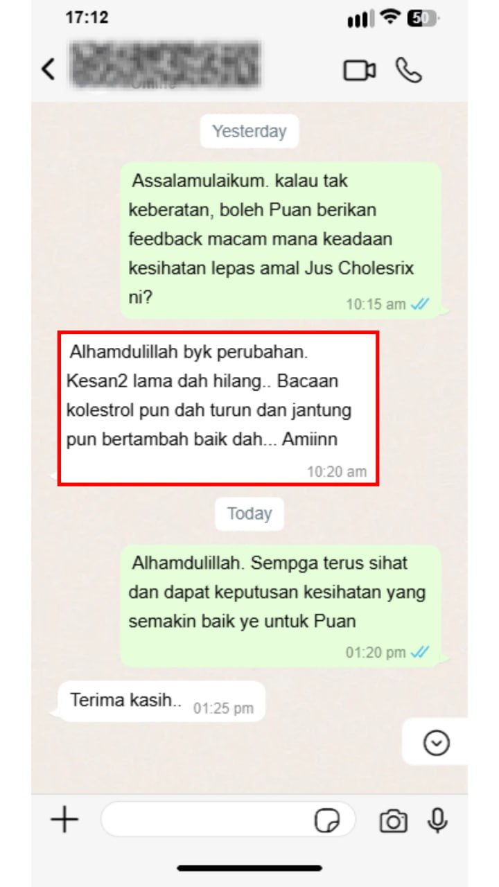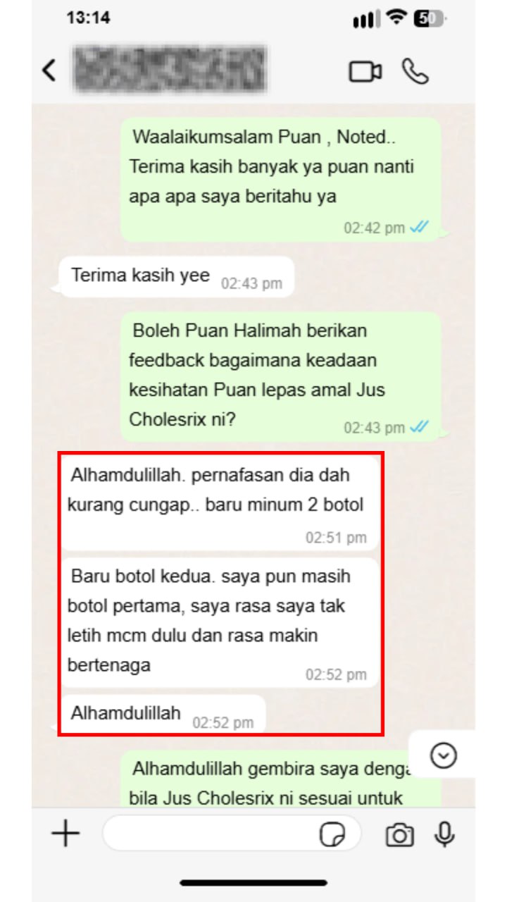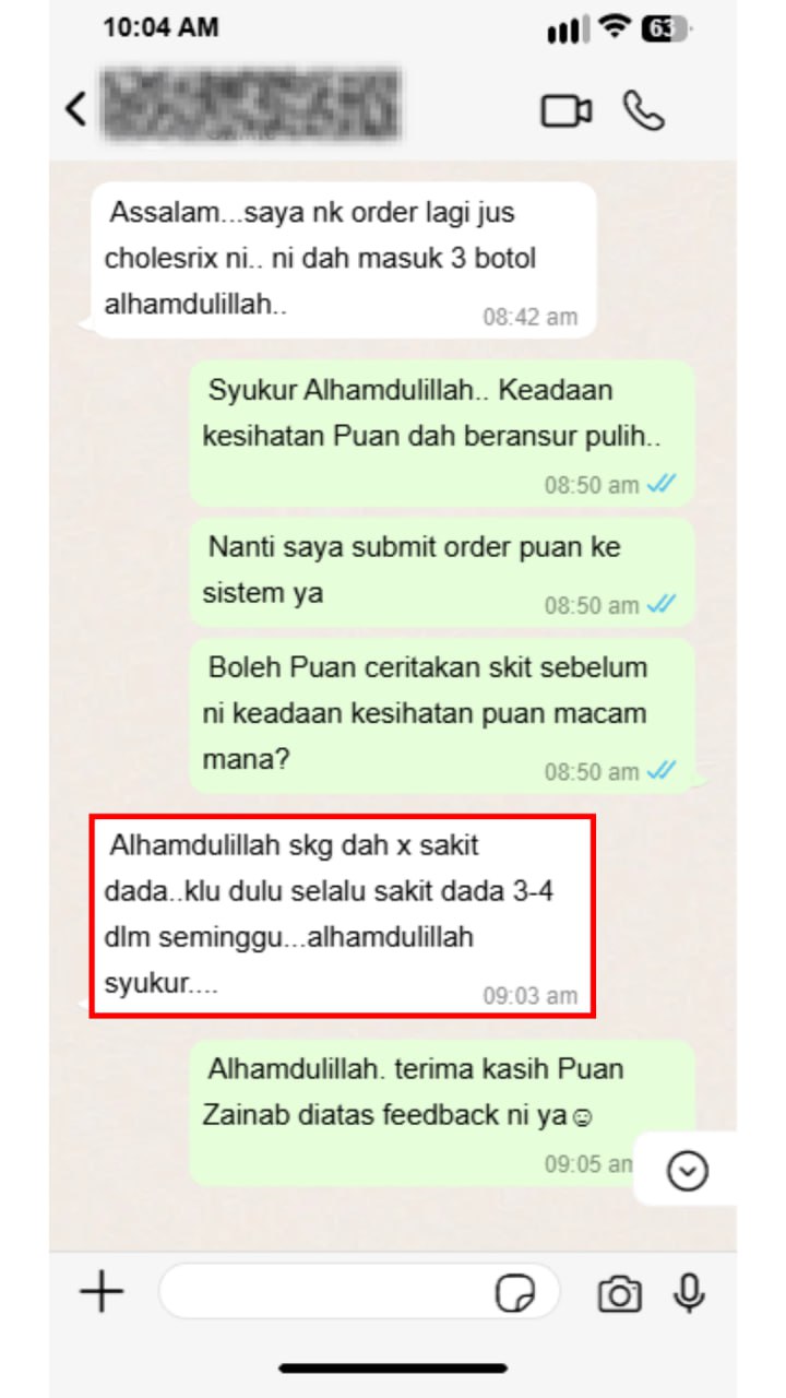 Berdasarkan feedback customer sebelum ni, 1 botol Jus Cholesrix dah ada perubahan dengan izin-Nya.