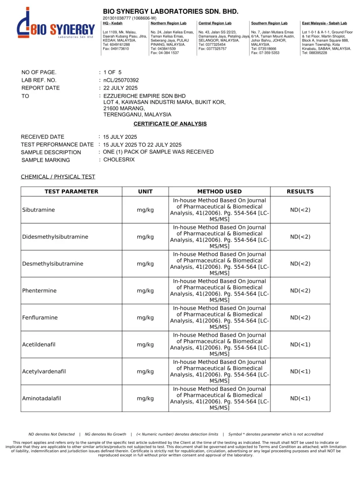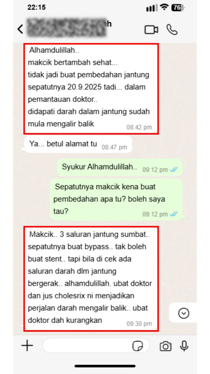 Kesemua Bukti Tanda Jus CHOLESRIX 100% Selamat Di Gunakan
